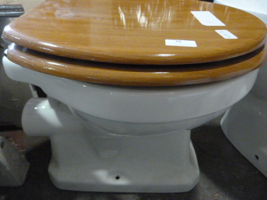 *Floor Mounted Toilet with Oak Seat