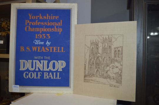 Promotional Picture - Yorkshire Professional Championship 1933, Won by B.S. Weastell, and a Printed Linen Picture - York Minster