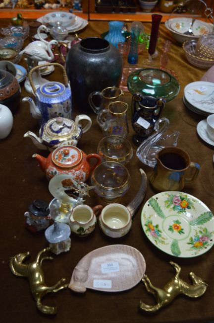 Quantity of Ceramic Teapots, Biscuit Barrels and Brassware