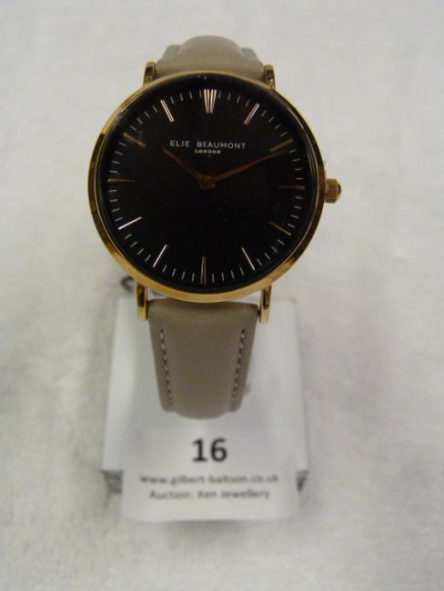 *Elle Beaumont Ladies Wristwatch with Genuine Leather Strap and Black & Rose Gold Dial