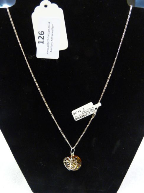 *46cm Diamond Cut Chain with Amber & Silver "Leaf" Pendant