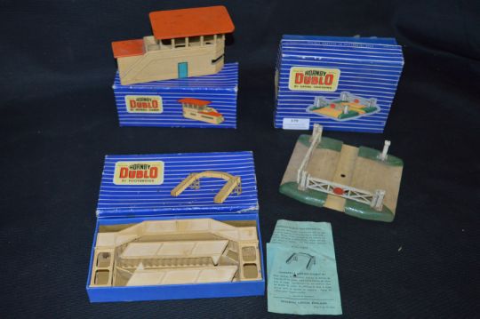 Boxed Hornby Dublo Level Crossing, Foot Bridge and a Signal Cabinet