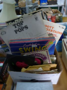 Box of LP Records and Singles