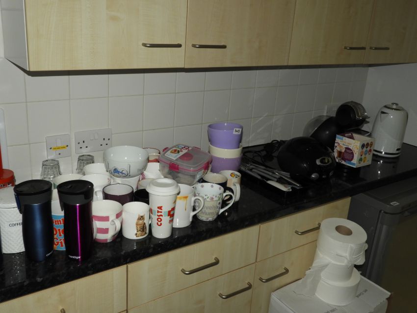 Polaroid CD Player, Dolce Gusto Coffee Maker, Kettle, Cups, Crockery, etc.