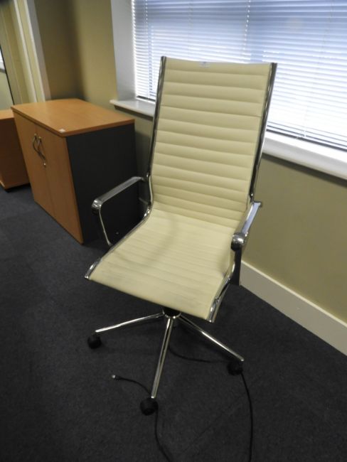 Contemporary Style Executive Chair (Cream Faux Leather on Chrome Frame)