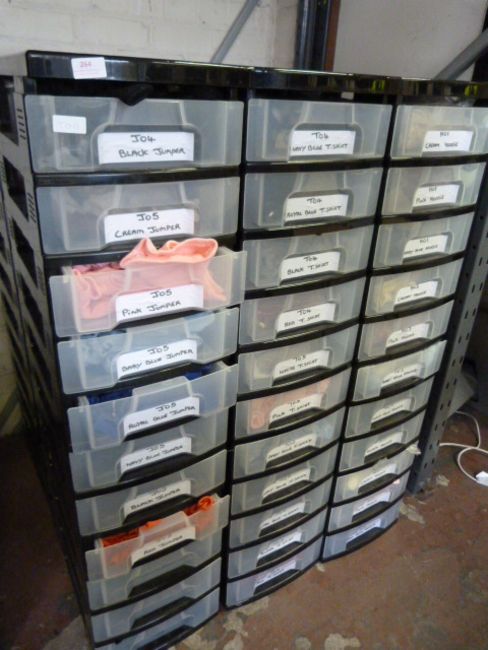 Thirty Three Drawer Unit with Assorted Clothes for Teddies and Dolls