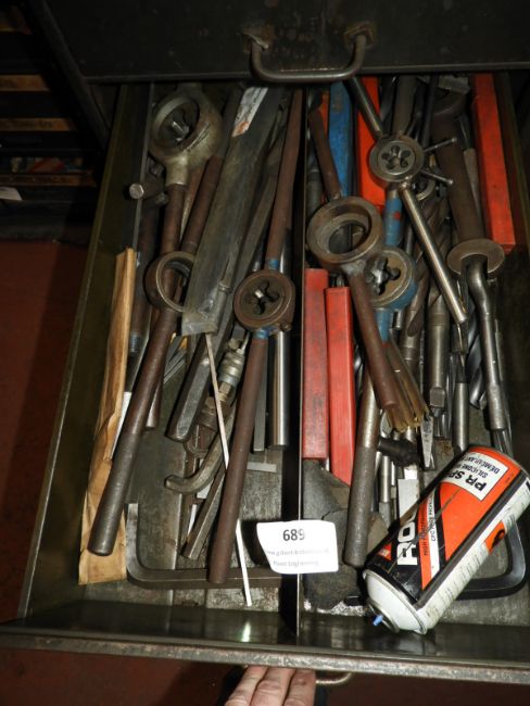 *Contents of Drawer; Assorted Morse Taper Drill Bits, Taps, Dies, Stocks, etc.