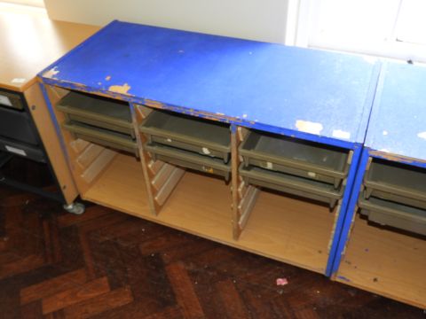 *Blue Painted Beech Storage Unit with Plastic Trays