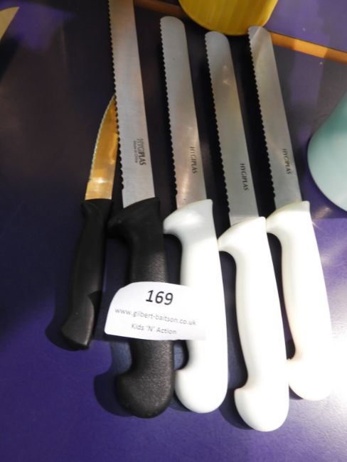 *2 Black and 3 White Handled Chef Knives