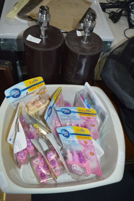 Quantity of Ambi Pure Air Fresheners, PLugs & Refills, Couple of LEather Bases