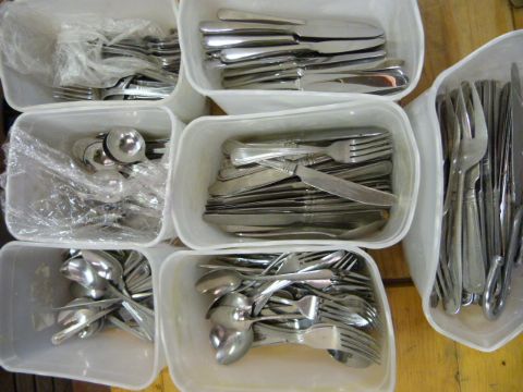 *Seven Tubs of Stainless Steel Cutlery