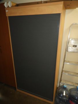 *Stationery Cabinet with Grey Tambour Front in Light Beech Finish