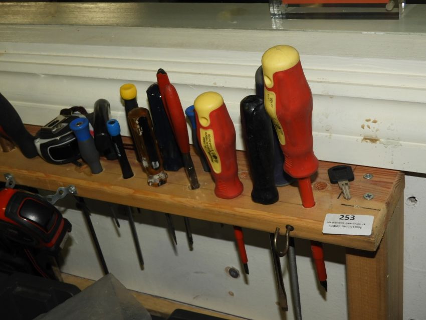 *Wall Mounted Pine Shelf Containing Handtools Including; Screwdrivers, Pliers, etc.