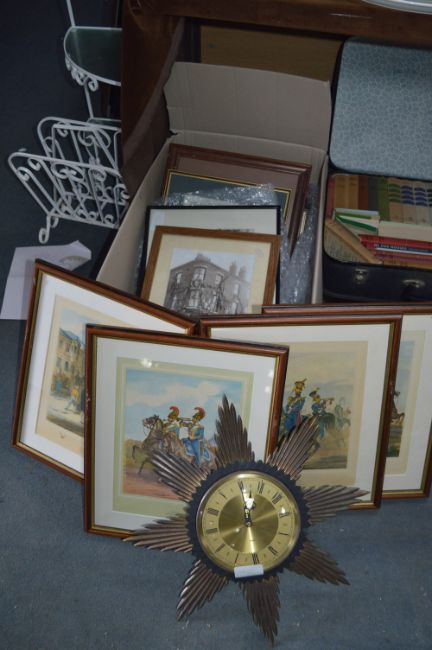 Metamec Clock and Framed Prints of Vintage Military and Hull Scenes (AF)