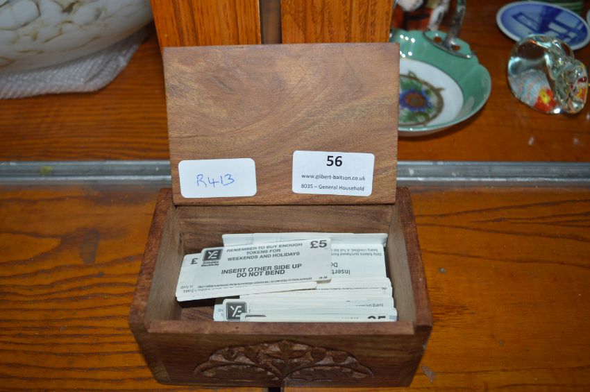 Collection of £5 Yorkshire Electricity Tokens in Carved Wooden Box