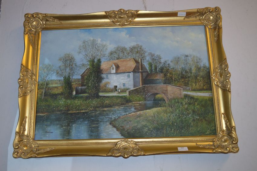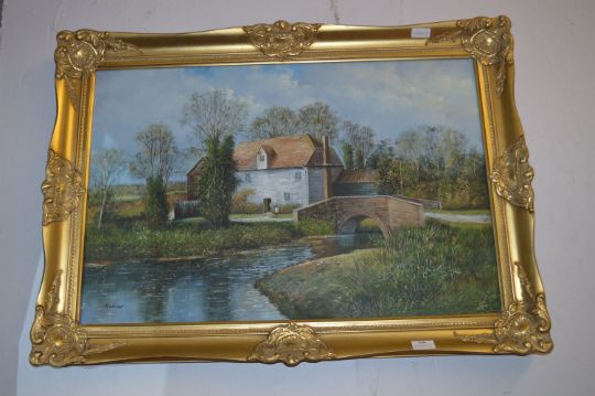 Gilt Framed Oil on Canvas - Riverside Scene Signed Robins