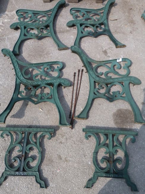 Two Pair of Cast Iron Bench Ends and a Pair of Cast Iron Table Ends