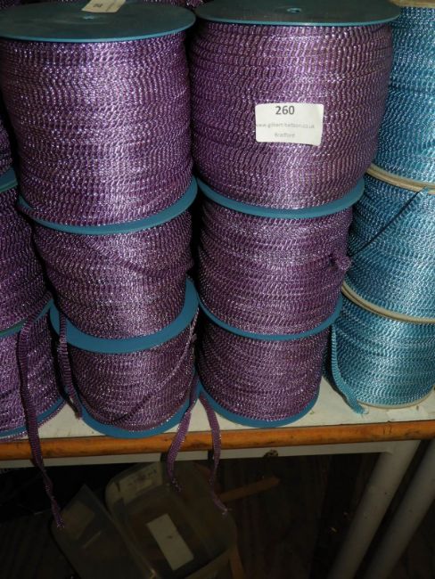 Six Rolls of Purple & Silver Braided Ribbon