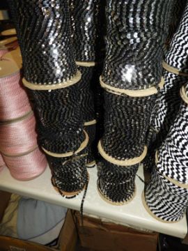 Mixed Fabrics, Threads, Beads, Buttons, Ribbon and Braids.