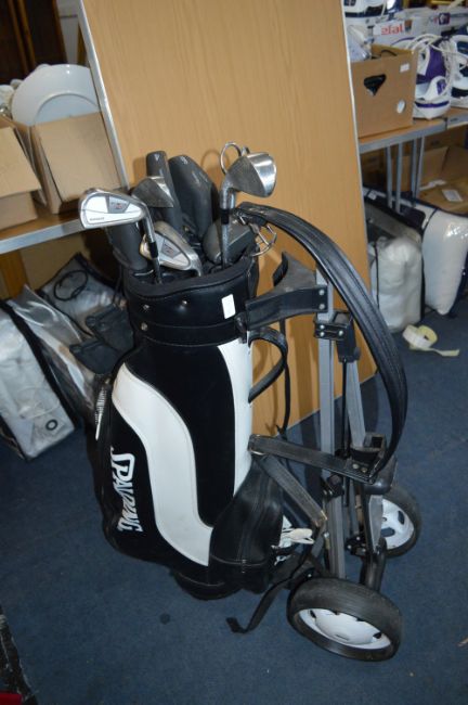 Golf Trolley and a Spalding Golf Bag with a Set of Mizuno Golf Clubs