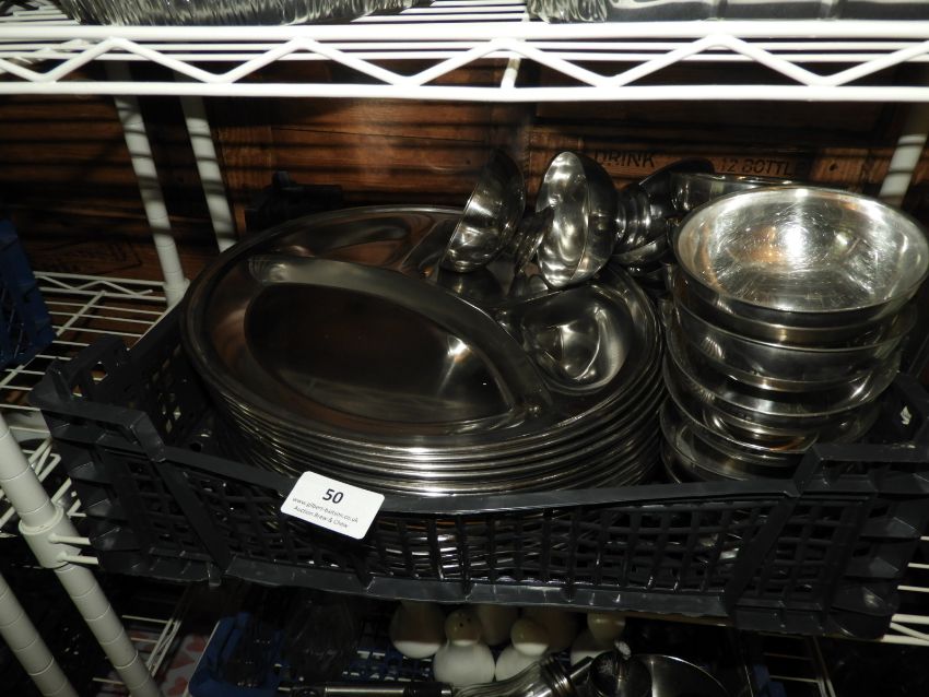 Stainless Steel Sundae Dishes and Twenty Four Dived Stainless Steel Plates Plates