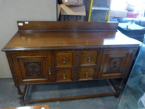 Oak Jac Acobean Style Heavily Carved Sideboard