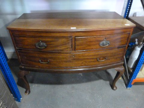 Victorian Bow Fronted Mahogany Three Drawer Chest of Cabriole Legs