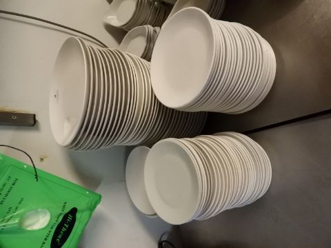 *Large Quantity of White Crockery Including; 31 Dinner Plates, 43 Dessert Plates, and 56 Side Plates