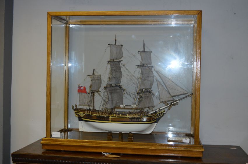 Model of Ship in Display Case - The Bathia (Built in Hull Eventually Became the Bounty)