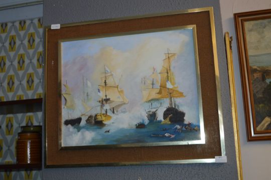 Oil Painting on Board - Naval Battle Scene