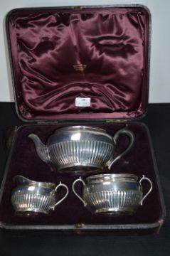 Boxed Silver Tea Set - Edinburgh 1891 by Hamilton & Inches, Teapot (444g), Sugar Bowl (183g) and Cream Jug (125g)