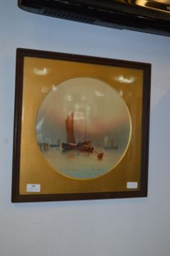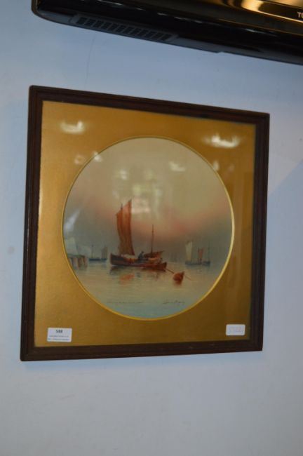 Victorian Framed Circular Watercolour by Garman Morris - "Evening on the South Coast" Maritime Scene