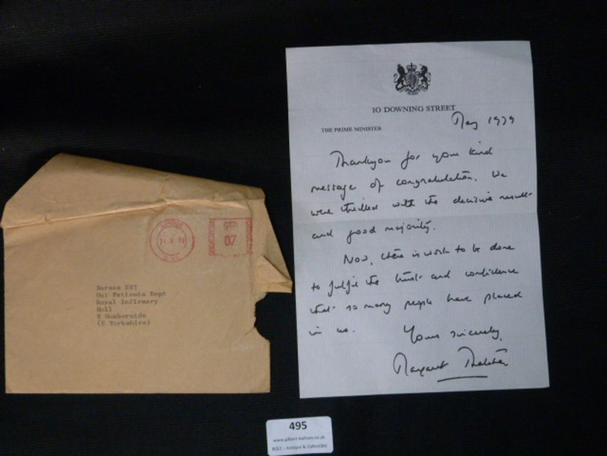 Personal Thank You Letter From Margaret Thatcher 1979
