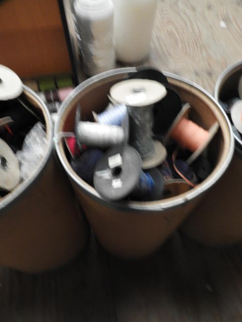 Cardboard Drum Containing Various Sequins, Threads, etc.