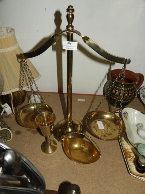 Pair of Brass Balance Scales, Brass Cup and a Small Bowl