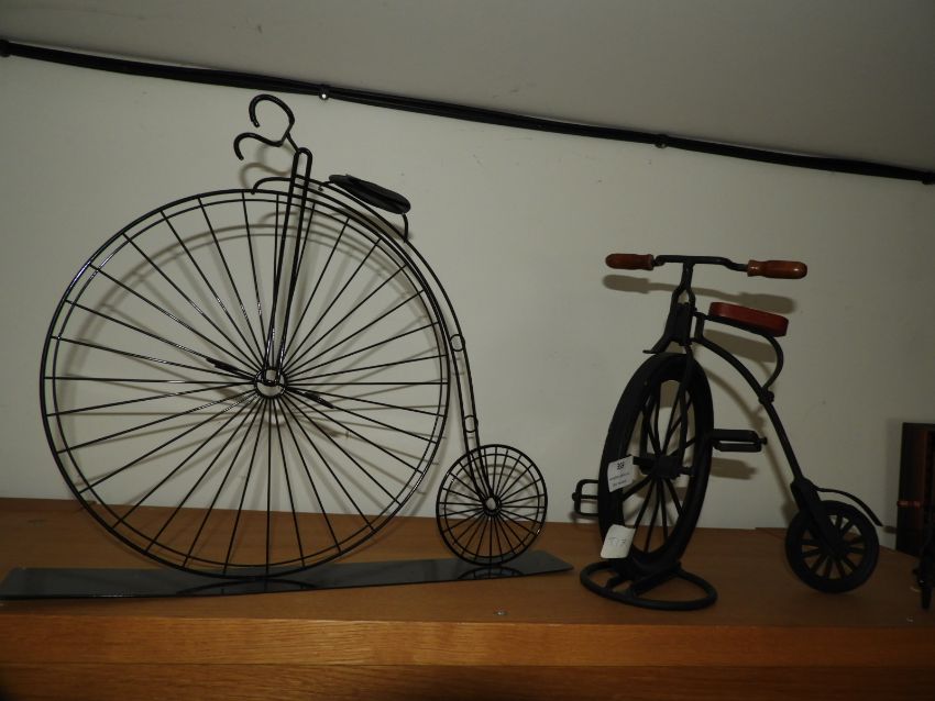 Two Metal Unicycle Ornaments