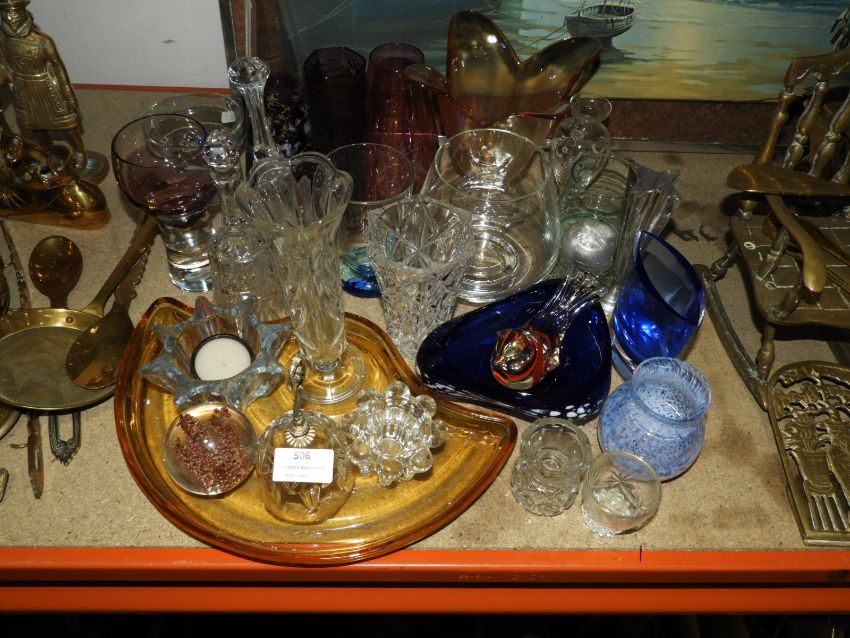 Assorted Glassware Including Bells, Decorative Bird, Studio Glass, etc.