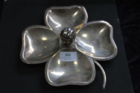 925 Sterling Silver Dish in the Form of a Four Leaf Clover - Made in Mexico, approx 326g Gross