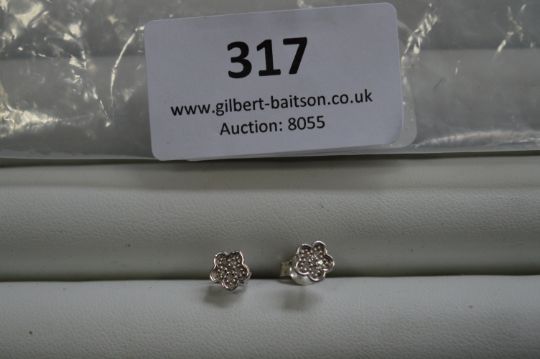 Pair of 925 Silver Earrings with Flower Design