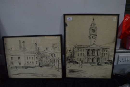 Two Sketches of Hull 1928 - Guildhall and Trinity House