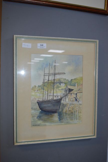 Framed Watercolour - Ship in Harbour