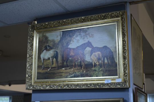 Gilt Framed Oil Painting on Canvas - Horses