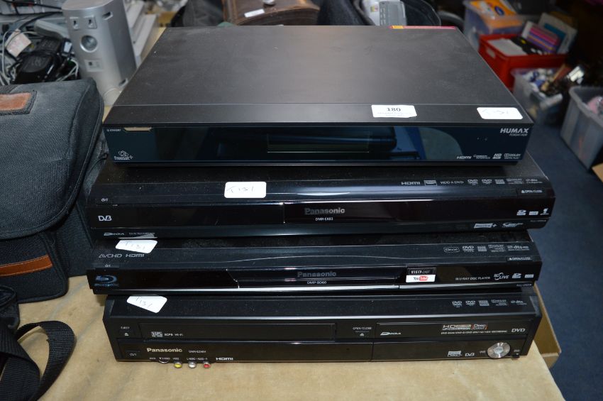 Three Panasonic DVD Players and a Humax Freesat Box
