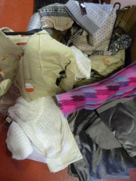 Box of Scarves, Bobble Hats, Tops and Fabric