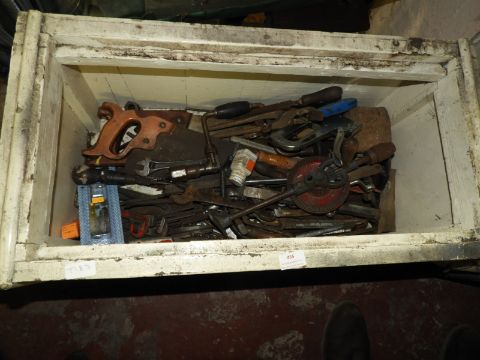 Pine Box Containing a Large Quantity of Assorted Vintage and Other Hand Tools