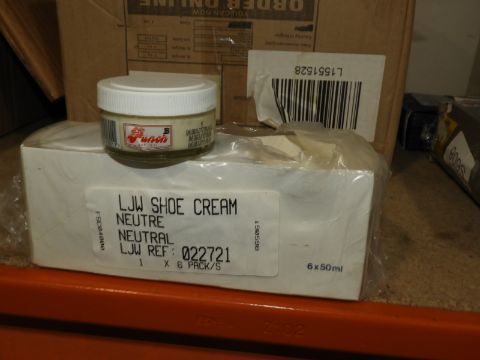 Three Boxes Containing Six Dozen Jars of LJW Neutral Shoe Cream