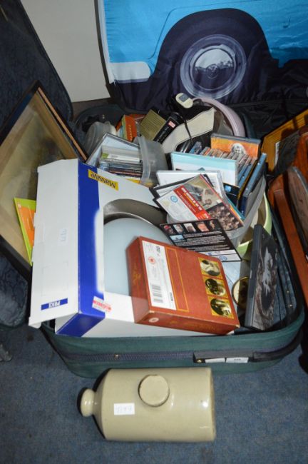 Suitcase Containing a Quantity of CDs, Ceiling Lights, etc.