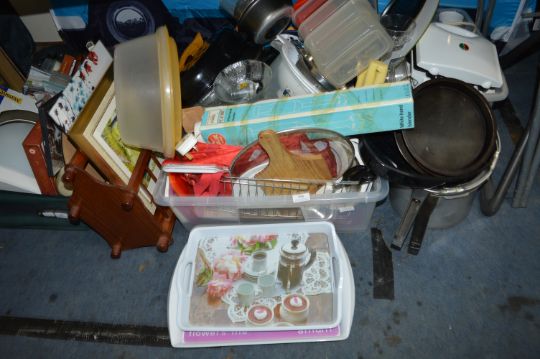 Large Quantity of Household Goods Including Magazine Rack, Kitchenware, etc.