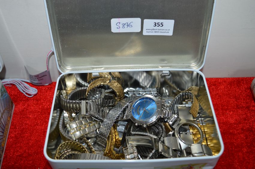 Tin Containing a Quantity of Wristwatches and Straps