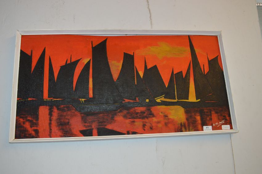 Retro Oil on Board by E.M. Atkin - Sailing Ships